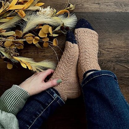 The Zayna Socks Knitting Pattern was so fun to knit. Using not even half of a 100g skein and a mini, these socks came together in less than a week. The perfect way to spend a quiet day inside or cozied up in a coffee shop. Meet your new favorite sock pattern! The Zayna Socks pattern is fun and fast. “Zayna” means beauty and grace. The perfect word to describe her. A great weekend project, and the perfect on the go sock with a beautiful floral texture and easy-to-memorize stitch pattern. Pure joy to knit. Spend the evening with this pattern, binge-watching your favorite Netflix Show. Have you seen Emily in Paris? Classic. Elegant. Simplistic. This sock pattern is perfect for your 30 minutes of knitting every morning. It works up fast.