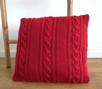 This modern soft cushion is created using the basic stitches: wide stripes knitted in stockinette stitch alternated with different cable patterns give the cushion nice texture and a chic classic look. Cushion is worked flat in two pieces and seamed using mattress stitch. There is a cable-pattern on the front and stockinette stitch on the back.