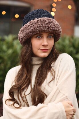 Jump on the color blocking trend with this snuggly fleece sherpa beauty – a sister pattern to the knit Teddy Bucket Hat. The jumbo yarn works up in no time and produces the ultimate trendy accessory for the season.