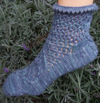 This pretty ankle sock pattern is suitable for moderately experienced sock knitters and is quick to knit. It features a modified Candle Tree motif on the foot, a large flame motif on the heel and an elastic rising smoke lace pattern on the ankle which makes it a comfortable wear for all shapes and sizes.