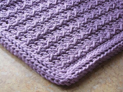Use a 395-yd. cone of extra-thick ("double worsted") Peaches 'n Creme cotton yarn, or work two strands together of regular Peaches 'n Creme (double the yardage = up to 800yds). The aran-style stitch pattern is pretty without being too lumpy under bare feet.