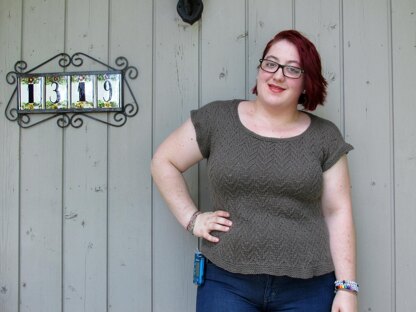 Thistle is worked in two pieces from the bottom and seamed. Stitches are picked up for sleeves and neckband, which are worked in the round.