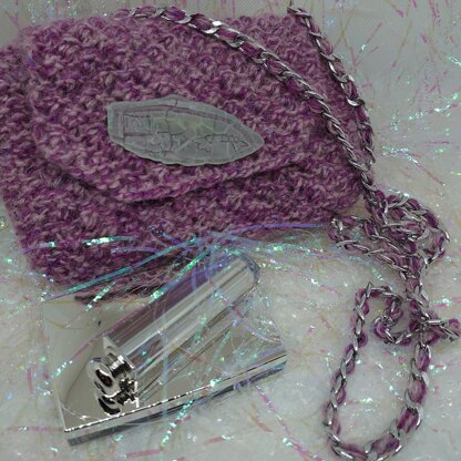 bag Two strands of tweedy yarn and one strand of kidsilk are combined in nubbly blackberry stitch to make this little bag. We added a purchased chain strap for some extra va va voom!