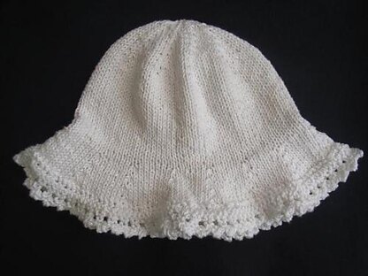 The hat is knitted in the round. Lace edging is optional extra and sewn in place at the end.