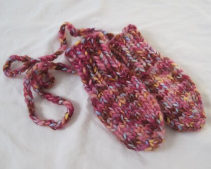 These mittens are knit from the fingertips to the cuffs, using short-rows. I had recently finished my first pair of socks and I thought that the short-row technique I used would be a neat way to make mittens. I played around a bit, and these little mittens are what came out of it.