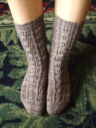 Knit from cuff to toe with a cabled and rib pattern, a Dutch heel and a Weldon’s Star Toe these are a treat for the novice sock knitter and experienced as well. The stitch patter