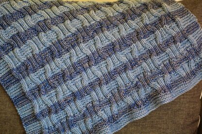 The Tides Baby Blanket is a ribbed stitch blanket with a cable cast on, a cable cast off and garter stitch borders. The blanket can be adjusted for size simply by adding the 16-stitch pattern repeat.