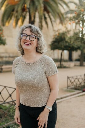 Tiffany es una camiseta de verano muy ligera que te recomiendo tejer con una fibra muy fresquita, como por ejemplo la seda o el lino. Está pensada para tenerla como “fondo de armario”, ya que su sencillez hace que vaya bien con cualquier prenda. Su diseño recuerda al estilo de la maravillosa Audrey Hepburn en la película “Breakfast at Tiffany’s”, de ahí viene su nombre. Su construcc
