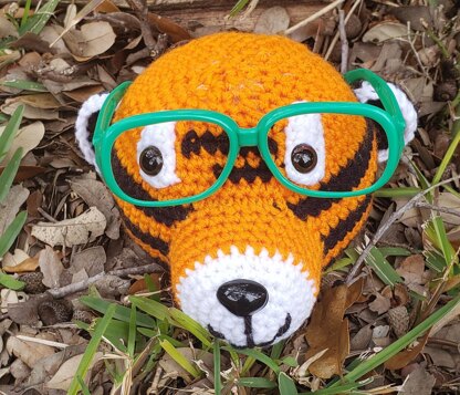 This adorable crochet tiger will keep track of your glasses for you. Keep it on your end table or nightstand so you always know where you put your glasses. Complete crochet instructions work up quickly in an evening using worsted weight yarn. Great gift for birthdays, Easter, or Mother's Day.