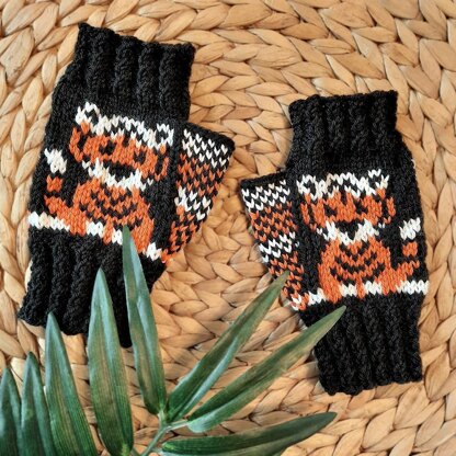 These fun fingerless Mitts feature cute Tigers. Choose traditional colors of Black, White & Orange or make an exotic White Tiger with Pawprints.