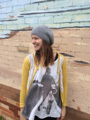 This is the first pattern I designed and published . It is very comfortable to wear and nice and cosy because the alpaca combined with the wool really keeps your head warm . It has a comfortable amount of slouch and it is not too difficult to crochet once you have learnt the basic stitches such as chain , double and treble . UK crochet terms used throughout .