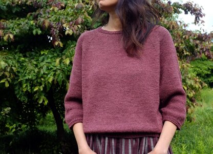 TILD is a pullover with simple lines, it is elegant and efortless chic. It has some pretty details, as decorative collar and sleeve hems. It is knitted from the top down, seamlessly, with rather deep raglans. The shape is slightly loose and short. Sleeves on the pictures are 3/4 length but the pattern provide instructions for long sleeves as well.