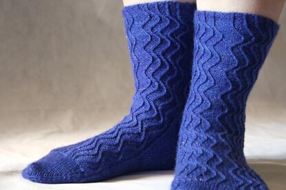 These socks have been designed for the [UK Sock Knitters 2016 Brit Actors KAL][1]. October is David Tennant month and these socks are inspired by his role as The Doctor, travelling through the time-space vortex and meeting people in a non-linear timey-wimey way. The undulating cables move together and apart, each following their own path like the Time Lord and his companions.