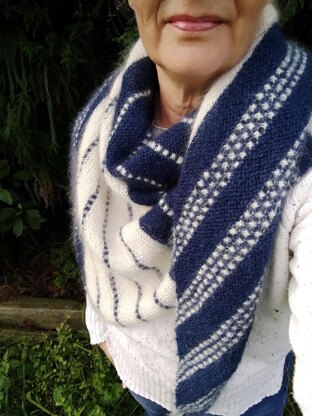 You could also knit this shawl single stranded in fingering weight & it may be knit single stranded, double stranded, (or both, like the DESIGN SAMPLE). Introducing more colour is an option, & inspiration to do so is included in the pattern notes.