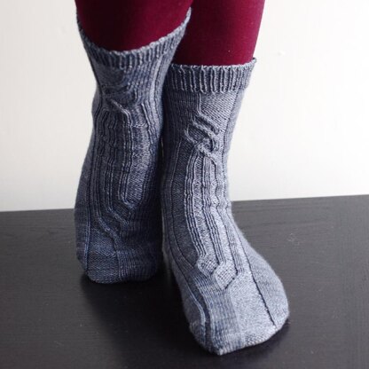 These Timey Wimey socks are inspired by our favorite Timelord! He once described time as non-linear "timey-wimey wibbley-wobbley stuff." The design featured series of neat lines moving up the foot and weaving into a "tangled mess" at the top of the sock.