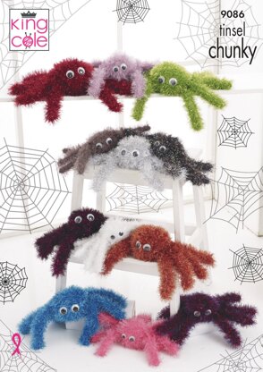 Tinsel Spiders in King Cole Tinsel Chunky - 9086pdf - Downloadable PDF is a Intermediate Knitting pattern by King Cole, available as a Downloadable PDF and includes instructions in English. Super fun to make, this pattern could be your next masterpiece!