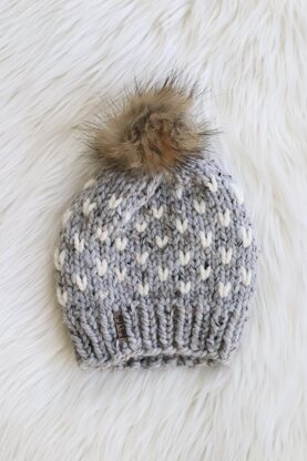 ABOUT This hat is knit from the bottom up in the round with a ribbed brim and classic heart design on the body. Sized for an average woman's head which is 21-23" in circumference as stated in the CYC sizing standards. This pattern uses basic fair isle colourwork with 2 colours. SKILLS This pattern is an easy level, appropriate for an experienced beginner. Skills needed: casting on, knit stitch, purl stitch, knitting in the round, basic fair isle, knitting 2 stitches together. WHAT YOU WILL RECEIVE: Immediately after purchase, you will instantly receive a digital download of the PDF pattern. Please send me an email if you don't receive the download link! MATERIALS NEEDED: - Size 9mm 16" circular needles - Size 10mm 16" circular needles - 2 colours of Lion Brand Wool-Ease Thick and QuickYarn (55 yds colour 1, 10 yds colour 2) - stitch marker - yarn/tapestry needle - scissors © 2019 KnitsNKnots, Designed by Janine Myska