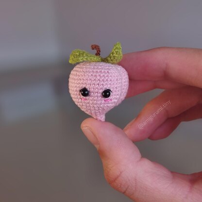 This Tiny peach is about 3,5 cm (1,3 inches) tall using a crochet hook size 1.5 mm.