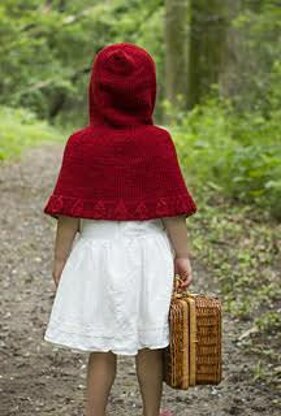 Perfect for this year's holiday knitting! Every sweet Red Riding Hood has a big, bad wolf hiding inside. This reversible caplet appeals to the gentle, whimsical child, as well as the adventurous spirit who’d rather to bare her ferocious teeth. And who says you can’t be both? There is nothing more fun than living a fairytale to its fullest. Find the Adult version here! The sample was knit in Swan's Island Organic Washable DK. A substitute yarn is shown below. The gauge for this garment should give a lightweight fabric that is not open. The fabric is intended to be light so that when folded in half, it maintains drape. If your fabric is too open, consider going down a needle size, or 2 and knitting the next size up.