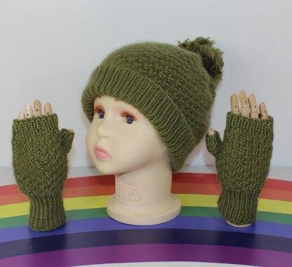 Toddler Child Aran 2 Stitch Check Beanie & Gloves