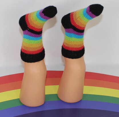 This is my Toddler Simple Rainbow Socks (Circular) knitting pattern. I have spent over 2 years developing this pattern so that they are very easy to make and turn out PERFECT every time. This makes sock knitting FUN! The knitting pattern provides full instructions for 4 baby sizes: XS (18 months), S (24 months), M (30 months) and L (36 months) and there are numerous photos to help you throughout. They are made in any 4ply sock yarn of your choice on 2 mm double pointed needles. Even the largest size takes only 35g of 4ply wool. The heels are worked in short rows without having to wrap and turn, meaning you can easily whip up a pair while watching tv.