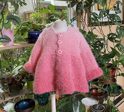 Knitted and designed by me. This coat is knit in garter stitch so there are no difficult stitches to memorize or too much counting. It is an easy to follow pattern for beginners/intermediate, very detailed written , designed with a minimum of complications, especially for anyone who wants a quick, project.