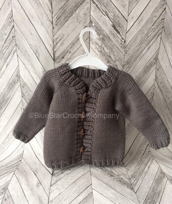 Tunisian crochet cardigan for boys with toggle buttons, simple yet modern design.