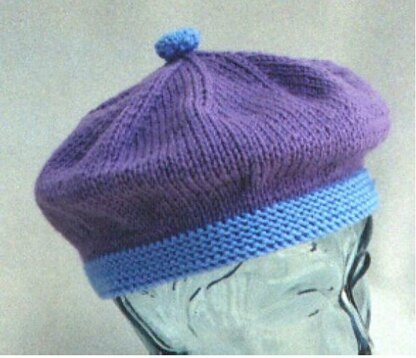 This hat is so cute on boys and girls! A good tam style hat that knits up easily and fast. Fits up to 22 inch heads, so perfect for children. Use up scraps of yarn for the bottom band, and top button! Uses worsted weight yarns, knitting needles, US # 5 and # 8.