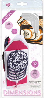 Add stunning detail and dimension to your projects with the Verso Dimensions - Bouquets & Banners Wonderfall Dies from Tonic Studios. These dies can be used with most die-cutting machines (sold separately).\n\nPackage Includes:\nWonderfall: a set of 12 metal dies that creates a 5.75” x 3.5” in decoration