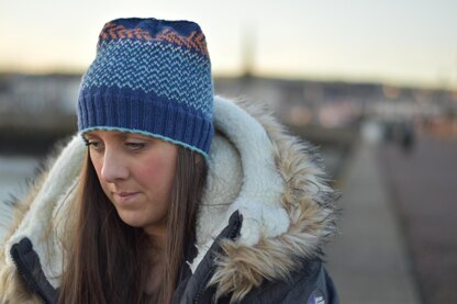 Tonn means wave in Irish and this fair isle hat has a wave & sail motif with a six-pointed star crown.