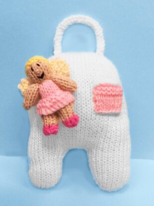 This knitting pattern is for beautiful tooth shaped pillow pattern with the Tooth Fairy on top. It also has a special pocket at the front to put the tooth and a pocket at the back for a magical coin to be left. The pillow measure approximately 17 cms tall by 11 cms across and the fairy measures approximately 8 cms tall.
