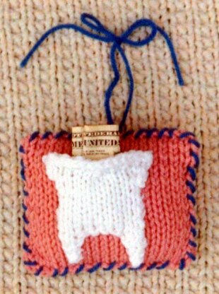 What fun! A perfect pillow for children that loose a tooth and waiting all night long for the tooth fairy to put money in it! Perfect size, 4 by 4 ½. The tooth shape is knitted then sewn on, leaving top open to insert cash or note. You will need only a small amount of pillow stuffing for this. Or use cotton balls for stuffing. This uses scrap yarns in worsted weight and knitting needles, US # 9. This works up fast, so you can make these for your next bazaar!