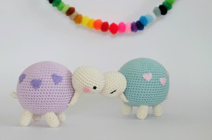You will need3mm Crochet hook50g of D.K/light worsted weight yarn in a colour of your choice for the shellSmall amount of cream colour (20g) for the head, legs and tail( I used Drops cotton light )6mm safety eyescrayon (for the rosy cheeks)Embroidery thread/cotton for sewing the heartsFelt/fabricTapestry needleScissorsToy stuffingSellotapePins