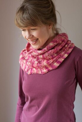 Something soft and sugary will surely sweeten up any season for you: “Toranja” is Portuguese for grapefruit, and that was the first thing that came to my mind when I saw this yarn. And I love pink grapefruits! I think they are not only the prettiest of fruits, but they also make a yummy drink if you mix them with (alcohol-free) beer or aloe vera juice (add vodka if you fancy). And they are a good source for vitamin C, which never hurts! Toranja starts with a provisional cast-on, is knit on the bias and has those cute little stockinette squares that make the sweet colors pool just a little bit. Interesting to knit, but not really complicated – and it is guaranteed to make your friends wonder how on earth you did it! 120 grams of colorful yarn make a generously sized cowl. If you have more yarn, you can make a wider loop, or cast on more stitches to make it longer.