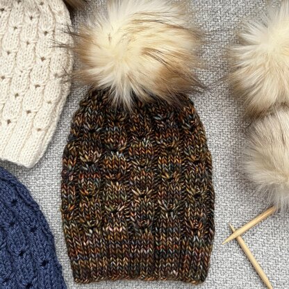 The Tortelleanie Beanie is a quick and easy knit that does not require a cable needle! Grab your favorite worsted or bulky yarn and knit this up for yourself, your market or as a gift!