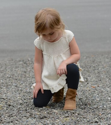 Pictured is size 4/5 with a positive ease of 2 inches on a 4 year old child.