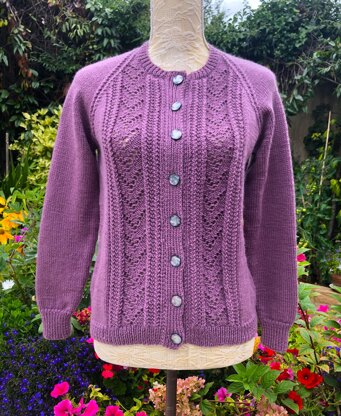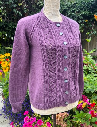 A classy cardigan using a 10 row panel with twist stitch verticals that beautifully frame the lacy centre sections. Perfect for all seasons and just a little dressy! If you wish to make it longer simply add on a few rows extra before commencing the raglan shaping. Worked bottom up and with full written instructions.