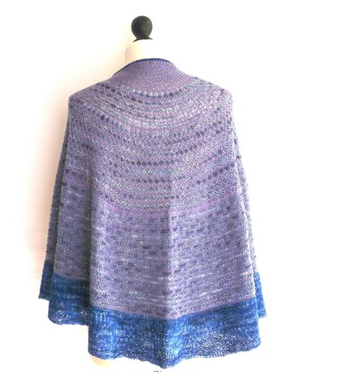 Life in the Long Grass is an artisan hand-dyed yarn and art studio in West Cork, Ireland. All its yarns are sourced from South America or British breeds and hand-dyed in the studio. This beautiful shawl, combining slipped stitches, brioche and an i-cord cast off, shows off the colours to stunning effect.