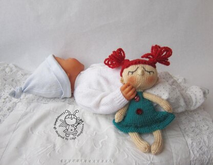 Materials needed • 4 double-pointed needles in a size suitable for the yarn weight you are using. I recommend using needles a size or two smaller than the yarn calls for, to produce a firm fabric. İ used Needles size 2 (3mm), size 6 (4mm). • Terracotta color Bulky by Hema (50% Wool, 50% Acrylic 80 meters / 50 grams) • Cream and green acrylic yarn (Kartopu «Flora» (100% acrylic 100g - 230m) for doll • Plastic eyes • Toy stuffing • Yarn needle • Stitch holder • 2 Buttons