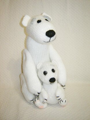 Toy knitting patterns - Knitted Polar bears, mother with cub, family toys