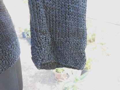 In the pattern is included a version in a finer cotton or linen/cotton (DK-weight) (see photo of the swatch in stocking st in reverse).
