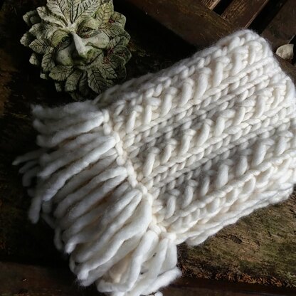 Tracks in the Snow knits up in no time in super bulky wool on 15mm needles - the simple stitch pattern is easy to memorise, the slipped stitch edge gives a polished finish and the fringe adds a touch of luxury.