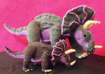 Spring is here and all my toy dinosaurs are having babies. Here we have Tracy Triceratops proudly showing off her new baby. The Tracy Triceratops and Baby knitting pattern provides full instructions to knit both of these amazing creatures.