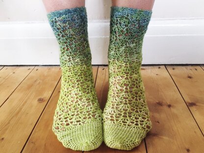 Trailing Lace Socks are the third of a six sock pattern collection for The Crochet Sock Club a bi monthly crochet subscription for lovers of crochet socks and hand-dyed yarns.