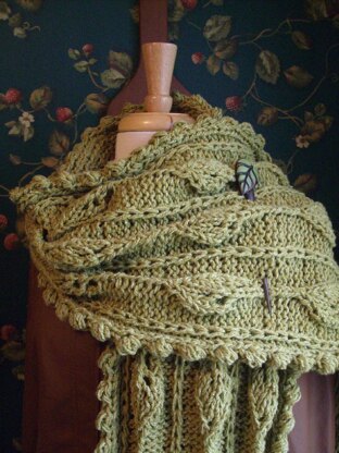 The name TreeWinder came to me some time ago. I loved the name and finally designed a pattern that lived up to the name and it is a must have accessory! It’s a chunky scarf knit with an unusual edge. The leaves grow out of the embossed knitting and wind their way around your neck.
