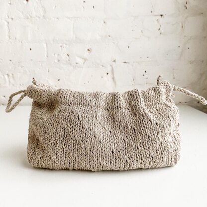 This beautiful knit drawstring bag employs a simple, sweet trellis slip stitch pattern with a hem channel and cleverly made drawstring (no i-cord!). The bag has a flat, boxed bottom with gusset so it can sit standing, and measures 5.5" x 9". Bag is made with 123 yards of DK Weight linen yarn. This makes a great project bag (you could even add a fabric lining!) Pattern includes link to video tutorial for how to make the hem channel, as well as detailed photographic tutorial for bag and drawstring.