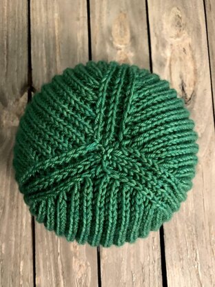Tri Bri is a hat knit in the round with one color yarn using the Brioche Stitch. The hat can be knit slouchy or can be worked to a longer length so that it can be folded up and worn like a beanie or watch cap.
