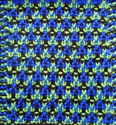 This easy slip-stitch pattern blends 3 different colors of yarn, yet you are only working with one color at a time. This square would be great for afghans where you have worked solid colored squares in these colors and now would like a square to pull the colors together.