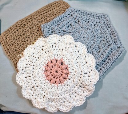 Three separate patterns. Each has their own texture to add beauty and interest. I like creating interest and using unusual or different stitch combinations to make fun and usable items. Enjoy your patterns.