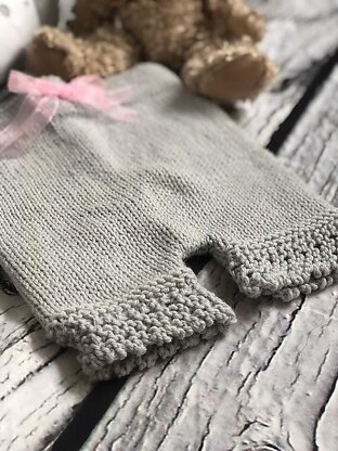 These leggings were designed for my granddaughter; they are a fun knit that will look super cute on babies of all ages. The legs have a lace edging to add a little interest, but the lace can be left off for a plainer knit if preferred.